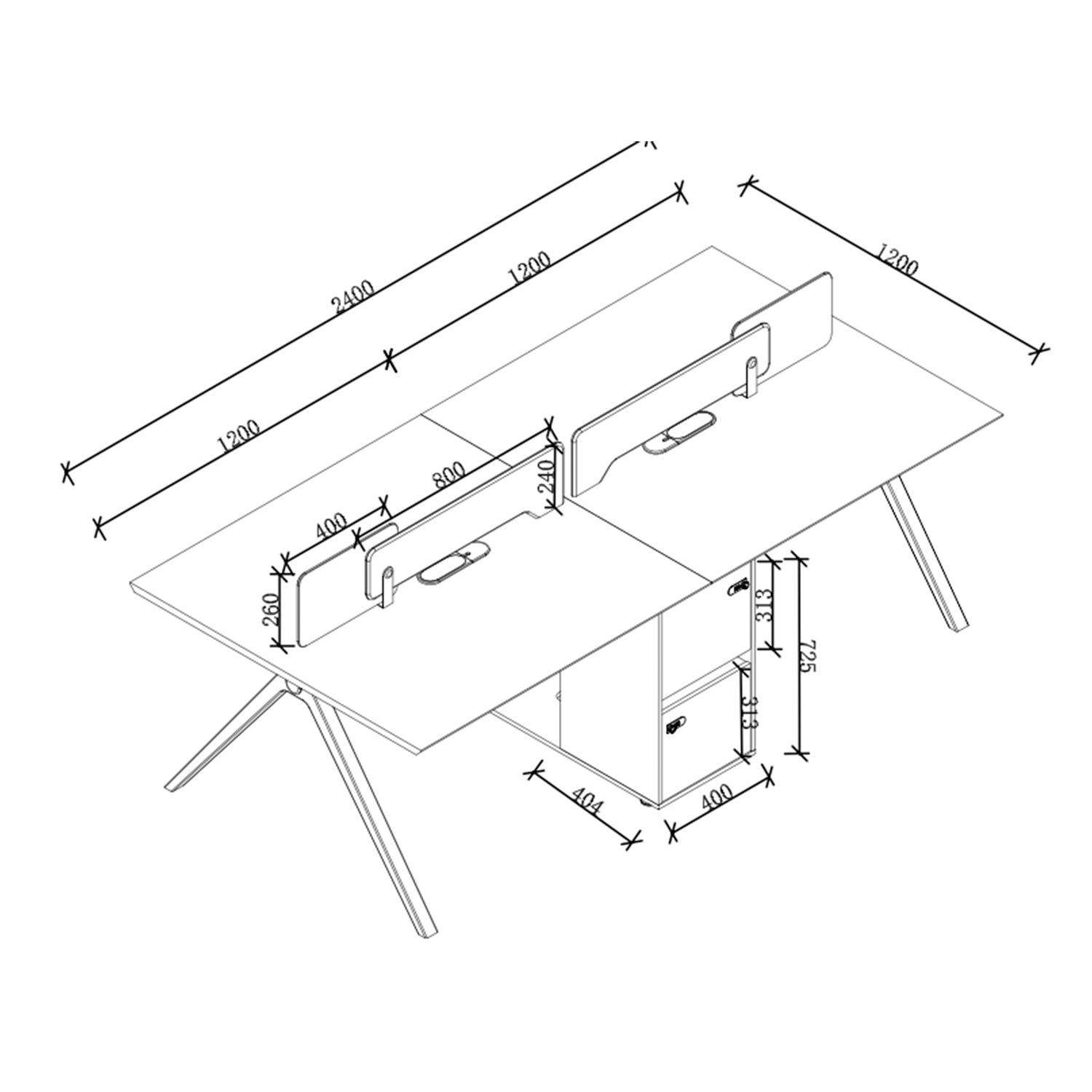 Estación de Trabajo 4 Puestos Arko 240x120 cms