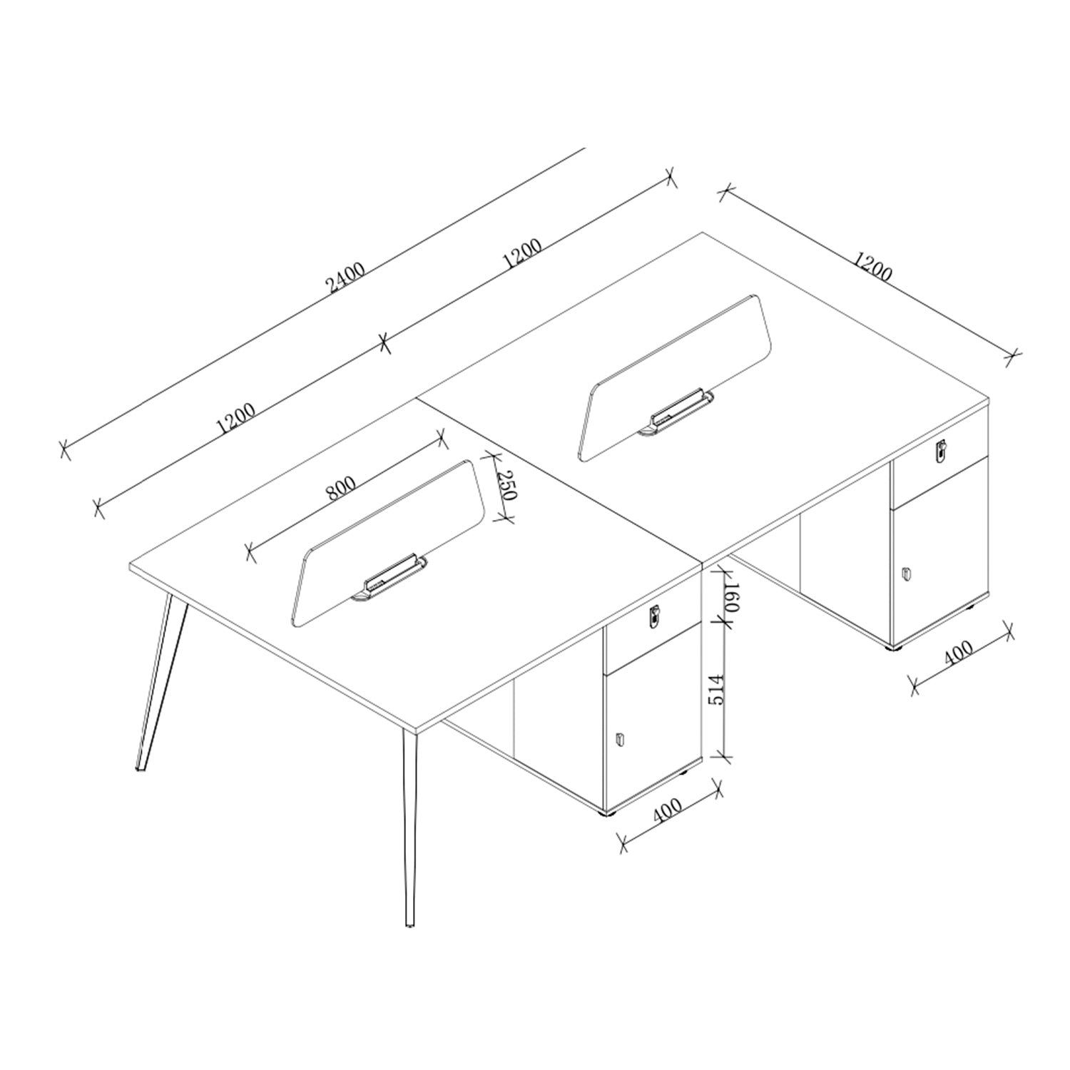 Estación de Trabajo 4 Puestos Nordik 240x120 cms